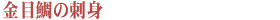 金目鯛のソテーバルサミコソース | 金目鯛の刺身 |