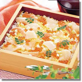 | はまぐりの磯辺揚げ | 貝のちらし寿司 | 小柱とアボガドのカナッペ | 赤貝の白和え | あおやぎの黄味酢和え | ||||||