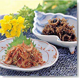 ◆のりしらす ◆桜えびのごま昆布 切り昆布………10g 白ごま……大さじ1 |