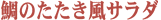 | 鯛のたたき風サラダ | 鯛のあら煮 | 鯛の付け焼き山椒風味 | 鯛のレモンマリネ | 鯛のまるごと寿司 | ||||||