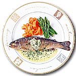 | ● | わかさぎの生春巻き | ● | かつおののっけ盛り | ● | 虹ますのムニエル パセリバターソース | ● | 鯛のトマトホイル焼き | |||||||