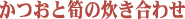 | かつおののっけ盛り | かつおと筍の炊き合わせ | かつおの薬味和え | かつおの韓国風のり巻き | かつおのカルパッチョ | ||||||