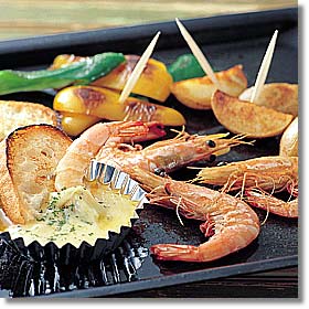 えびとチーズをホイルに包んで焼いてもよい。 |