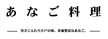 | あなご丼 | あなごのエスカベージュ | あなごの網焼き わさびマヨネーズ | あなごのう巻き風 | あなごとプルーンのバルサミコ風味 | ||||||