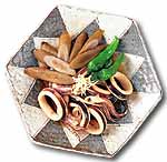 | ● | あじの柳川もどき | ● | いかとごぼうの煮物 | ● | いわしの梅煮 | ● | うなぎの洋風そうめん | |||||||