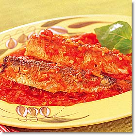いわしは表面を焼いてから煮込むとくずれにくい。 |