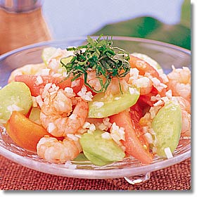| えびはおせち料理やおめでたい席などの日本料理には欠かせない素材のひとつです。またいろいろな種類のえびがあるのも日本ならではの特色のひとつ。えびのコレステロール値は100gあたり150~200mgと少々高目ですが、肉と違って血清コレステロール値を上げないタウリンが含まれています。また冷凍のむきえびなどは、解凍する時に酒をふりかけるとぐっと風味が増します。 |