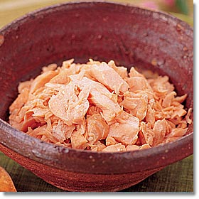 | 鮭は、日本人に最も好まれている魚ではないでしょうか。塩鮭は昔から保存食として活用されてきました。冷蔵庫のない時代に鮭を食べたいという願いから生まれたのでしょう。最近は、生鮭も多く出回り、料理によって使い分けができます。生鮭はすぐに鮮度が落ちるので、冷凍保存がおすすめです。 |