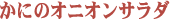 | かにのオニオンサラダ | 青梗菜と卵のかにあんかけ | かにドリア | かにめし | かにたま | ||||||